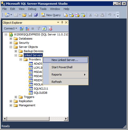 Работа со связанным сервером из «Microsoft SQL Server Management Studio»