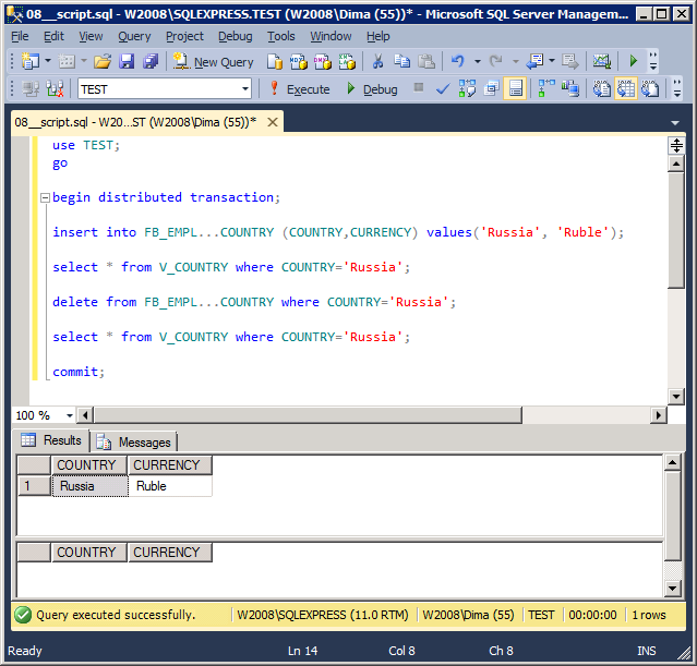 Давайте убедимся, что V_COUNTRY будет работать в рамках явной транзакции: